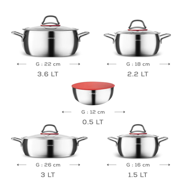 سرویس قابلمه ۱۰ پارچه استیل برند کاراجا ترکیه مدل Emirgan XL