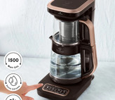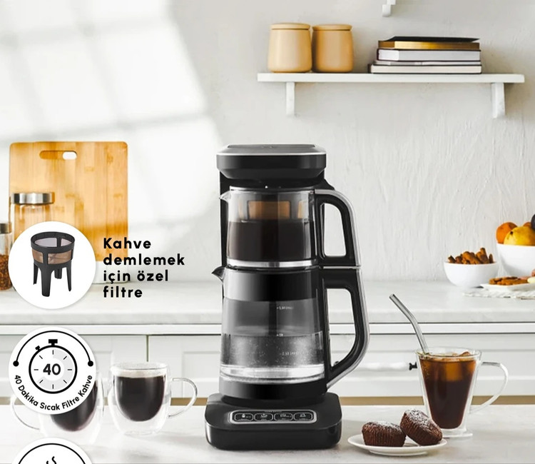 با قابلیت تنظیم دما، میتوانید در دمای ۴۰ درجه برای نوزاد خود آب مناسب شیر خشک آماده کرده و در دمای ۱۰۰ درجه آب را برای دمنوشها و نوشیدنیهای گرم بجوشانید. همچنین امکان دم کردن قهوه فیلتر نیز وجود دارد که تا ۴۰ دقیقه تازه باقی میماند. این دستگاه هنگام دمآوری چای یا قهوه بهصورت صوتی وضعیت را اعلام میکند. همچنین با صفحه لمسی آن میتوانید تجربه متفاوتی از تهیه چای داشته باشید و به آشپزخانه خود جلوهای زیبا ببخشید. با قوری شیشهای ۰.۸ لیتری و مخزن آب شیشهای ۱.۵ لیتری، میتوانید همراه خانواده و مهمانها از نوشیدن چای لذت ببرید.