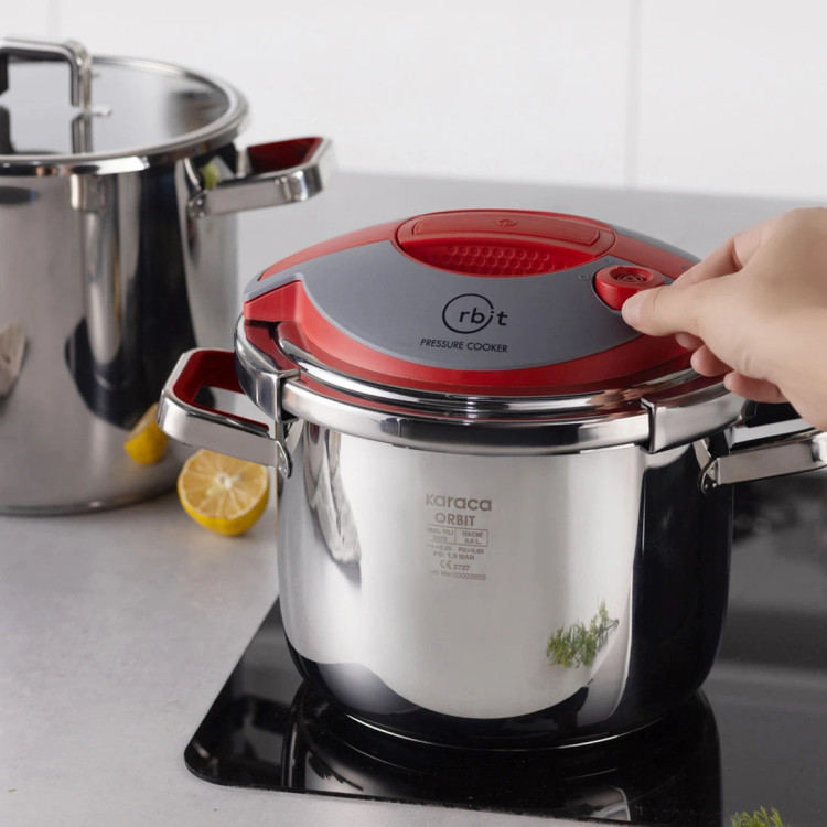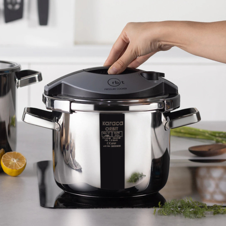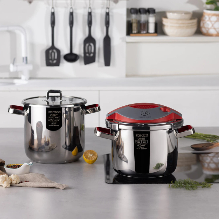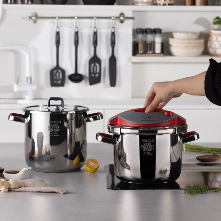 در آشپزخانه حداکثر سرعت، حداکثر طعم! ست دُودُکلی تَنچِره کاراجا اوربیت 6+8 لیتری با برنامههای پخت، دمای پخت را هنگام پخت سبزیجات، گوشت، ماهی و حبوبات تنظیم کرده و ویتامینهای غذا را حفظ میکند. با سیستم پایه پیشرفته، گرما را به طور یکنواخت پخش کرده و طعم غذا را افزایش میدهد. ست تَنچِره کاراجا اوربیت از جنس استیل ضد زنگ 18/10 ساخته شده است و تَنچِرههای 6 و 8 لیتری آن دارای سیستم ایمنی برای استفاده ایمن هستند. دربهای دُودُکلی بر روی هر دو تَنچِره قابل استفاده است و سیستم باز و بسته شدن ارگونومیک آن، راحت و سریع است.