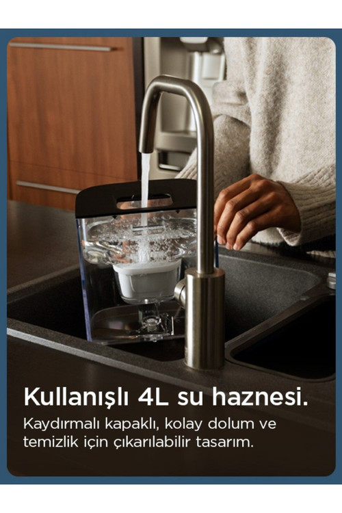 • با یک دکمه آب را فیلتر کرده و هر زمان خواستید فوری گرم میکند: برای آب آشامیدنی تازه و خوشطعم یا نوشیدنیهای با عطر و طعم قوی، با فناوری گرمکن فوری، آب فیلتر شده را در چند ثانیه گرم میکند.