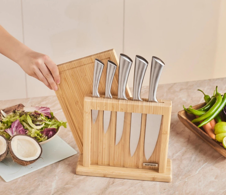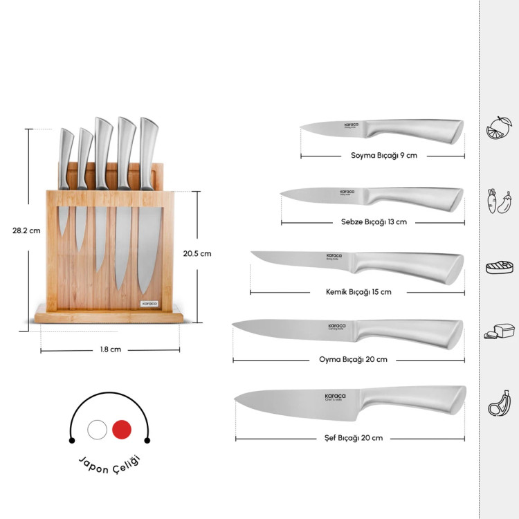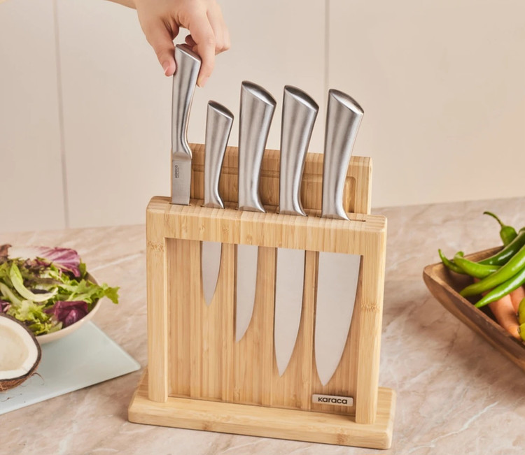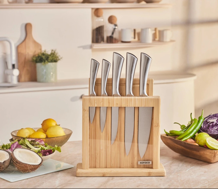 ست چاقوی ۷ پارچه Karaca ترکیه مدل سامورای ناگویای ویگور از فولاد ژاپنی به همراه تخته برش