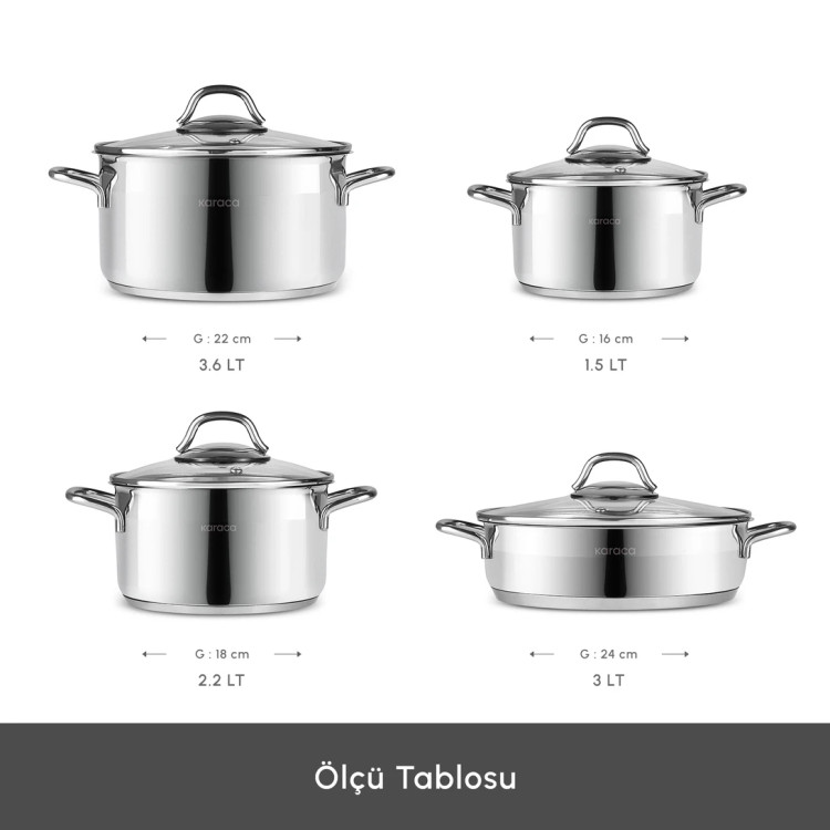 ست قابلمه استیل ۸ پارچه کاراجا مدل Belen