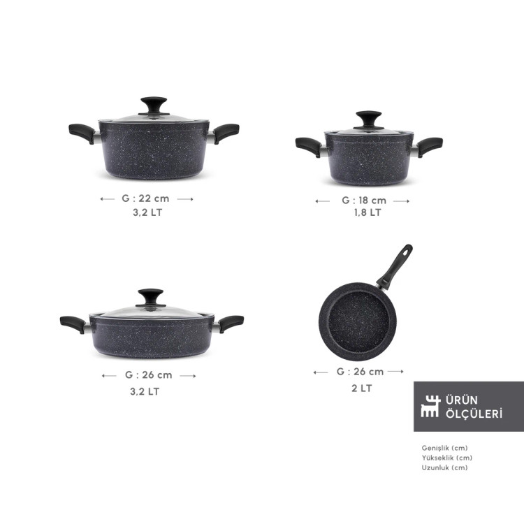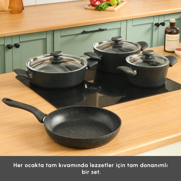 سرویس قابلمه بیوگرانیت ۷ پارچه Karaca ترکیه مدل Defne V2 مشکی