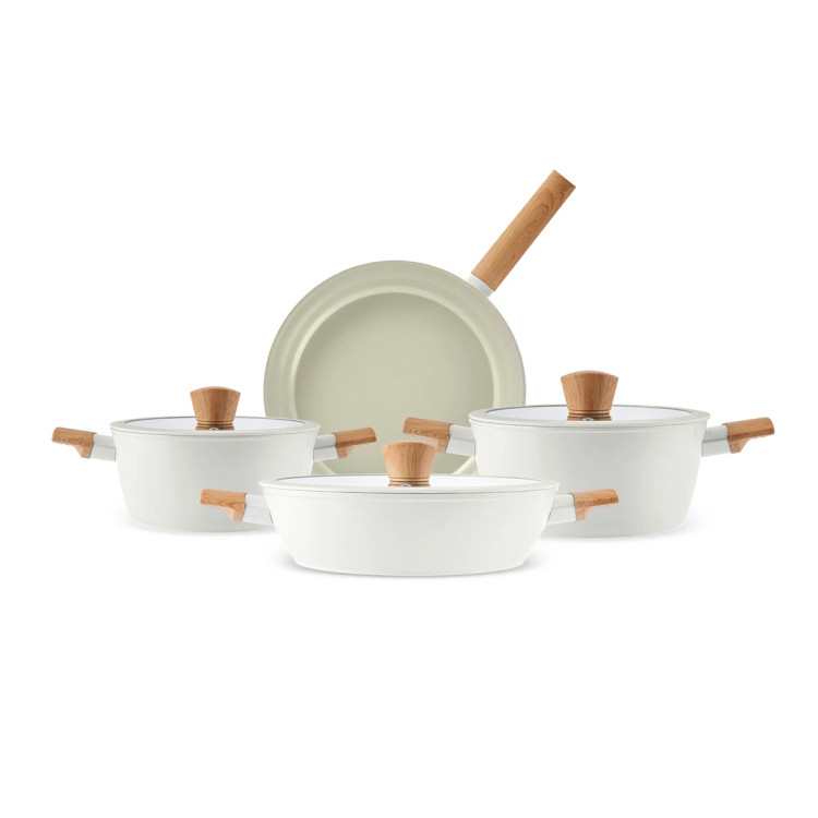 ست ۷ پارچه قابلمه کاراجا مدل Swiss Crystal رنگ بادامی کرم با پایه القایی