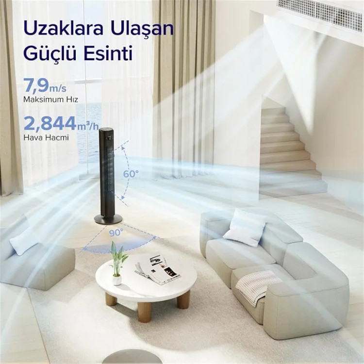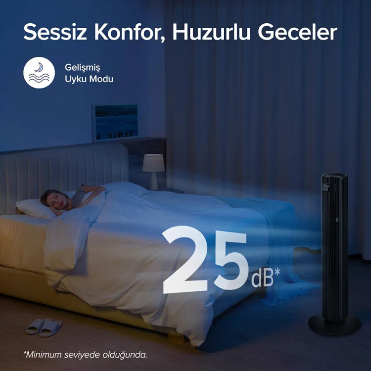 دارای قابلیت کنترل از راه دور و اتصال به خانه هوشمند. این پنکه با صدای بسیار کم ۲۵ دسیبل و سرعت باد ۷.۹ متر بر ثانیه، امکان خنکسازی سریع کل خانه را فراهم میکند.