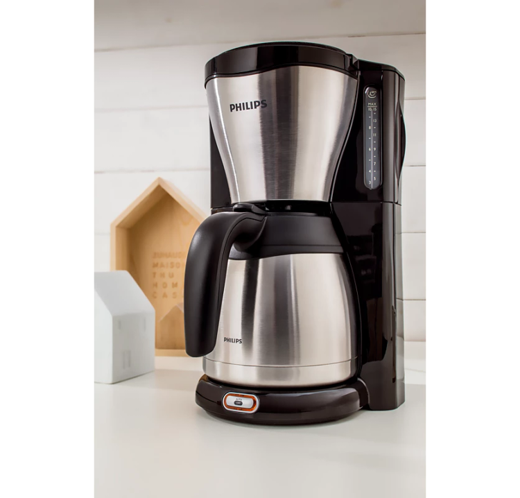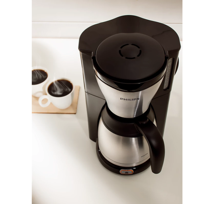 پس از دم کردن قهوه، دستگاه به صورت خودکار خاموش میشود تا هم در مصرف انرژی صرفهجویی شود و هم ایمنی فراهم گردد. ترموس وظیفه نگهداشتن گرمای قهوه را بر عهده دارد.