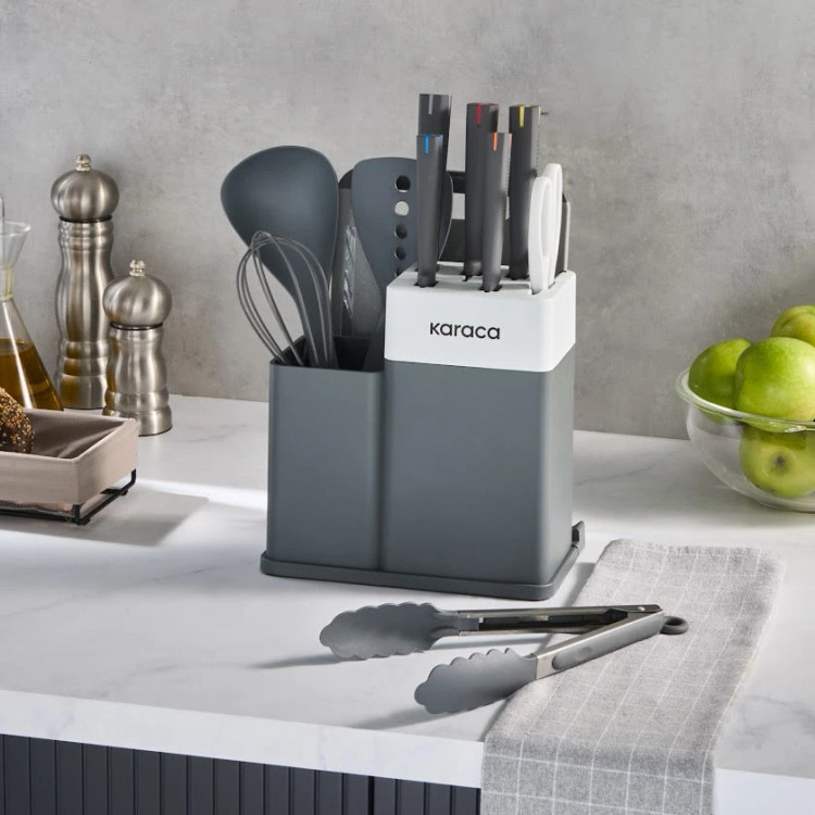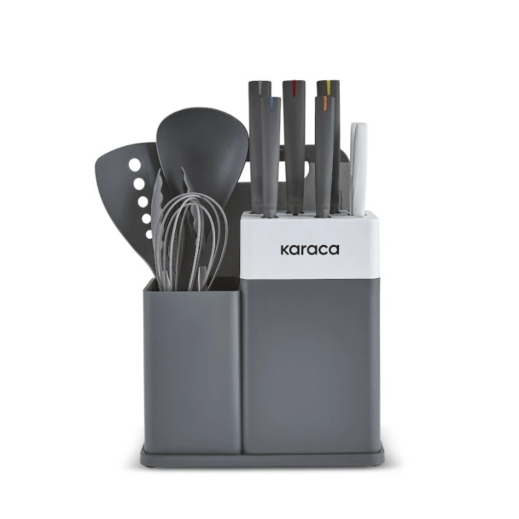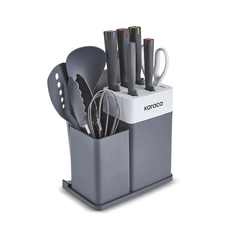 Karaca Yame 12-Piece Knife Set with Serving Utensils – Grey