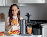 آبمیوه را چطور دوست دارید؟ با دو فیلتر متفاوت و مخزن تفاله، نوشیدنی خود را کاملاً متناسب با ذائقهتان تنظیم کنید. فیلتر مشکی با سوراخ ریز برای آبمیوههای کمتفاله و فیلتر نارنجی با سوراخ بزرگ برای آبمیوههای پُر تفاله مناسب است – برای میوههایی مانند گلابی، آناناس و توت عالی است.