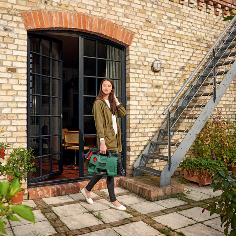 امروز مبلمان باغ فردا خودرو – کارواش فشار قوی Bosch EasyAquatak 110 میتواند برای اهداف نظافتی گوناگون مورد استفاده قرار گیرد برای اهداف بسیار کثیف مانند دوچرخهها و سطلهای زباله میتوان مخزن متصل به نازل پاششی را با شوینده پر کرد تا تمیزکاری مؤثرتری انجام شود