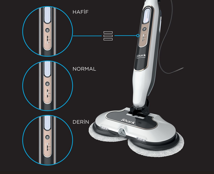 زمین شوی بخار شارک Steam & Scrub برای پاک کردن لکه های چسبیده تا دو برابر بهتر سطوح را به آرامی برس میکشد پدهای تمیزکننده با 150 دور در دقیقه لکه های سرسخت آلودگی چسبیده گرد و غبار سطحی باقی مانده ها روغن و کثیفی را از بین میبرند