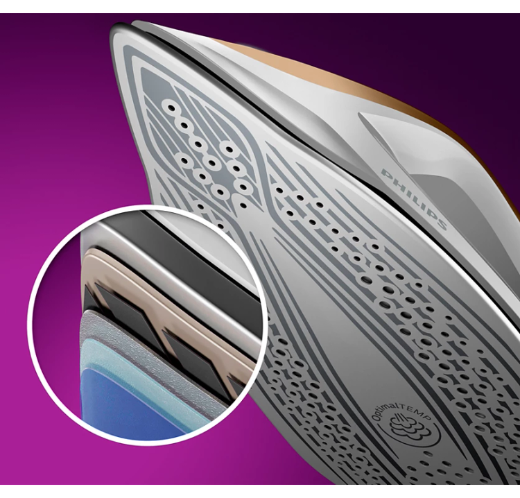 به لطف فناوری OptimalTEMP با یک تنظیم دما نتایج فوق العاده به دست آورید ما تضمین می کنیم که این اتو حتی در صورت رها شدن بدون مراقبت هیچ پارچه قابل اتوکشی را نمی سوزاند می توانید اتو را با خیال راحت روی لباس ها یا میز اتو رها کنید