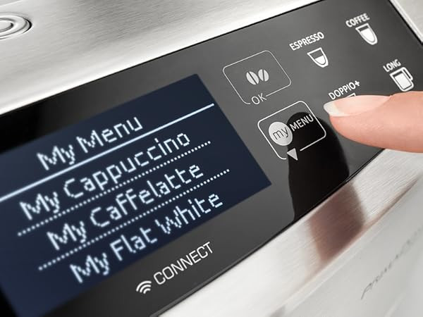 **ONE TOUCH:** دستگاه قهوهساز اتوماتیک با قابلیت Bean-to-Cup؛ آمادهسازی اسپرسو و کاپوچینو هیچوقت به این آسانی نبوده است. با صفحه کنترل لمسی و فناوری یک لمس تنها با یک دکمه نوشیدنی خود را آماده کنید.