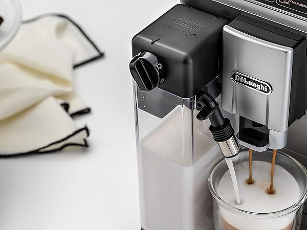 **سیستم LATTECREMA:** ایجاد شیر کفدار یا بخار دادهشده برای سرو نوشیدنیهای بینظیر؛ پارچ حرارتی با دیواره دوجداره شیر را هنگام بیرون بودن از یخچال در دمای ایدهآل نگه میدارد و خودتمیزشونده است.