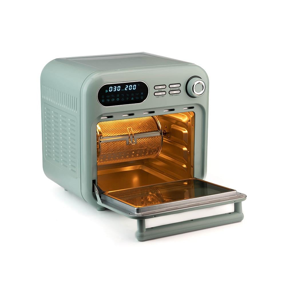 دستیار همهکاره برای آشپزخانههای مدرن! سرخکن + فر Gem Retro با موتور دوگانه سرخکن بادی، تا 85٪ مصرف روغن را کاهش میدهد و هم سرخ میکند و هم میپزد. با ظرفیت داخلی بزرگ 18 لیتری، 18 منوی دیجیتال خودکار و دمای قابل تنظیم بین 100 تا 230 درجه سانتیگراد، از سیبزمینی سرخکرده تا مرغ، از börek تا کیک، در هر دستور غذایی عملکردی حرفهای ارائه میدهد. درب شیشهای دو لایه "Low-E" امکان مشاهده داخل دستگاه را فراهم کرده و در عین حال از خروج گرما جلوگیری میکند؛ نوار آببندی عایق انرژی، فضای داخل فر را ثابت نگه میدارد. انتخابی ایدهآل برای وعدههای خانوادگی، میانوعدههای سالم و گرمکردن سریع غذا.