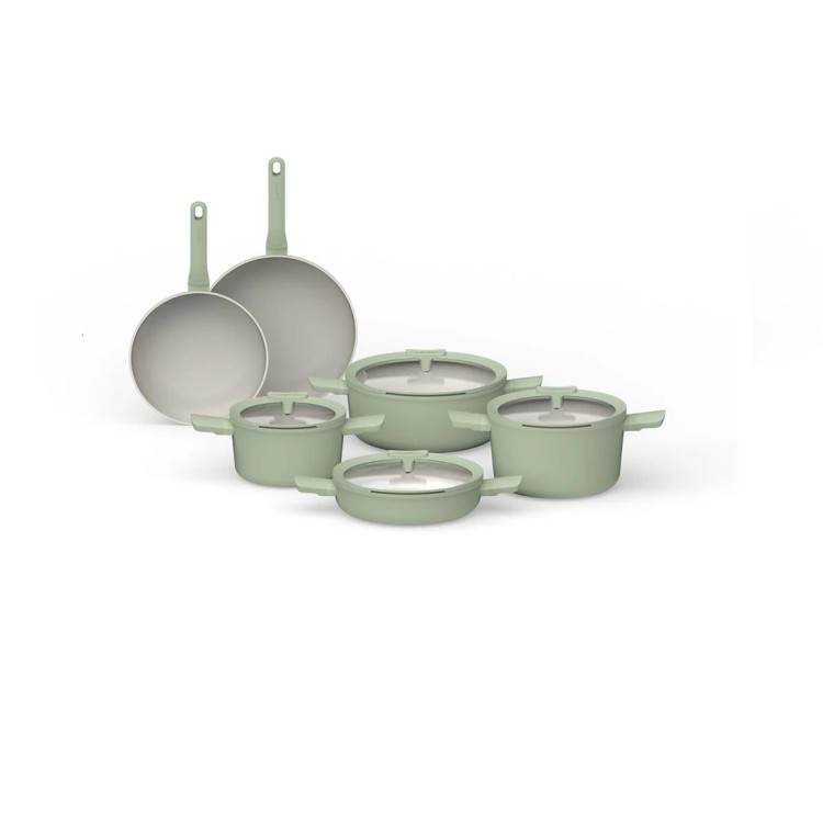 سرویس قابلمه گرانیتی ۱۰ پارچه برند Berghoff بلژیک مدل Leo سبز زیتونی