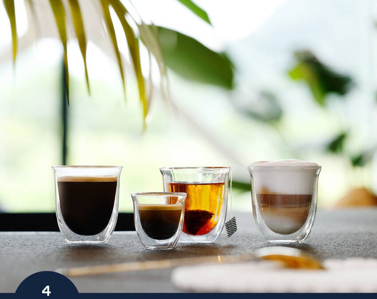 از میان 4 دستورالعمل تکلمسی انتخاب کنید: اسپرسو، قهوه بلند (آمریکانو)، کاپوچینو و آب داغ (برای چای، شکلات داغ و غیره)