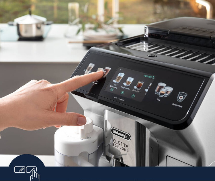 دستگاه قهوهساز اتوماتیک جدید De’Longhi Eletta Explore با طراحی جلوی نقرهای رنگ، بیش از 50 نوع نوشیدنی داغ، سرد و Cold Brew را برای کشف در اختیار شما قرار میدهد. به لطف فناوری LatteCrema Hot، از کف شیر داغ اتوماتیک لذت ببرید و با فناوریهای LatteCrema Cool و ColdExtraction نوشیدنیهای خنک و Cold Brew را چه در خانه و چه در حرکت با عملکرد راحت To-Go امتحان کنید.