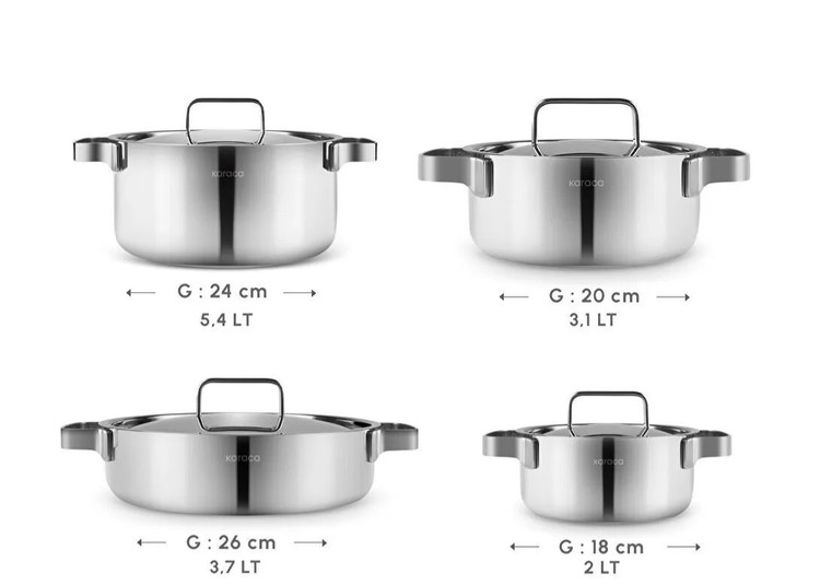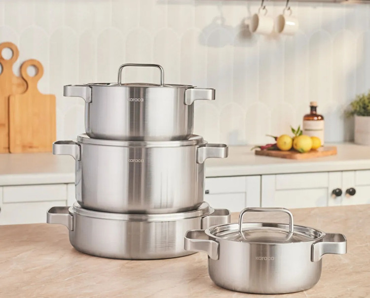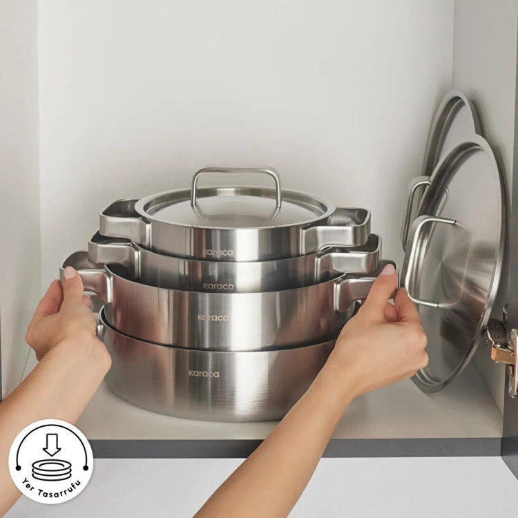 سرویس قابلمه استیل ۸ پارچه Karaca ترکیه مدل Powersteel 316+ 3Ply Onyx