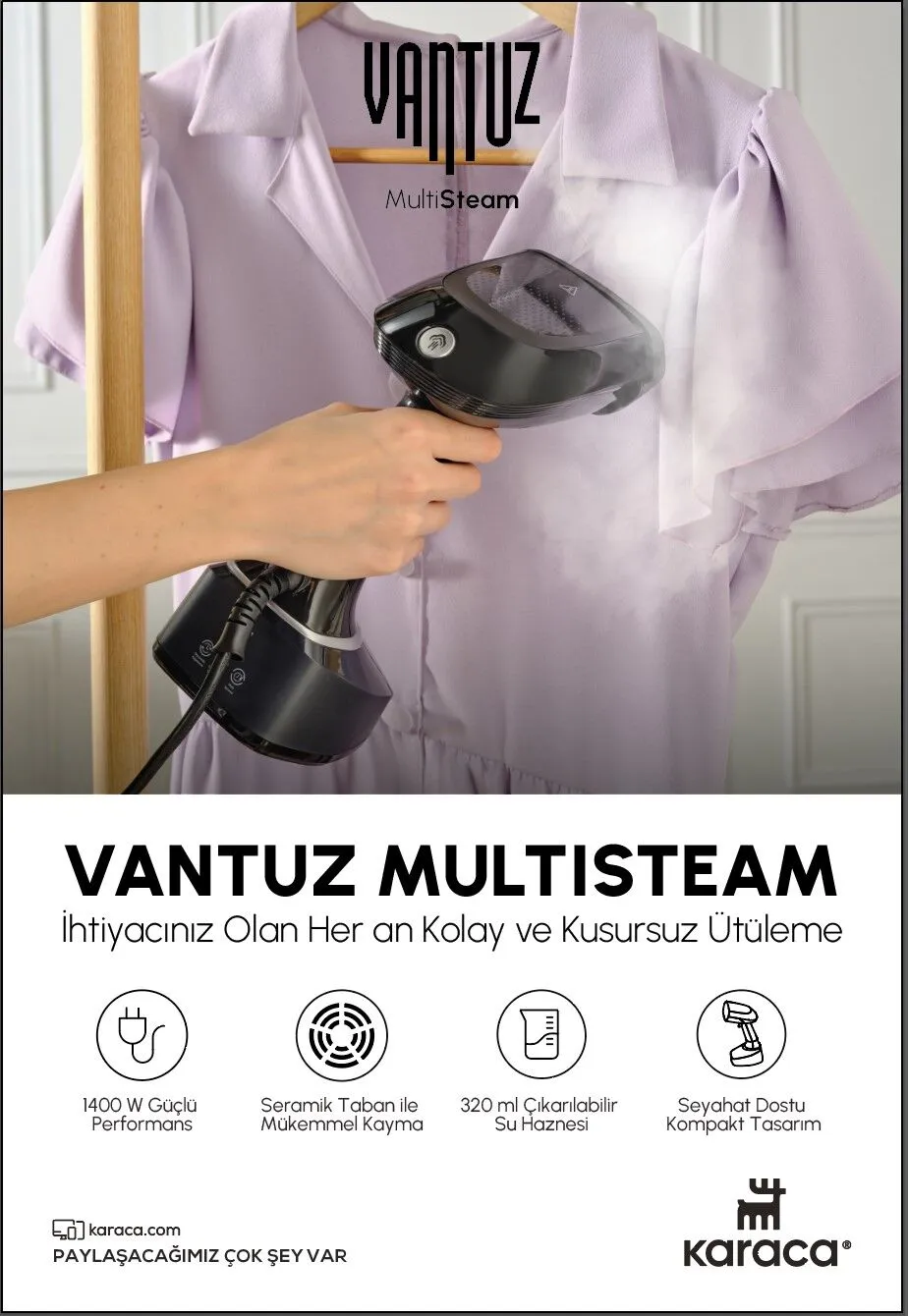 اتو بخار عمودی کاراجا Vantuz MultiSteam با توان 1400 وات به سرعت گرم میشود و عملکردی فوقالعاده ارائه میدهد. در مدت کوتاهی آماده استفاده میشود، چروکها را به سرعت باز میکند، در زمان صرفهجویی کرده و نتایج بینقصی به شما میدهد.