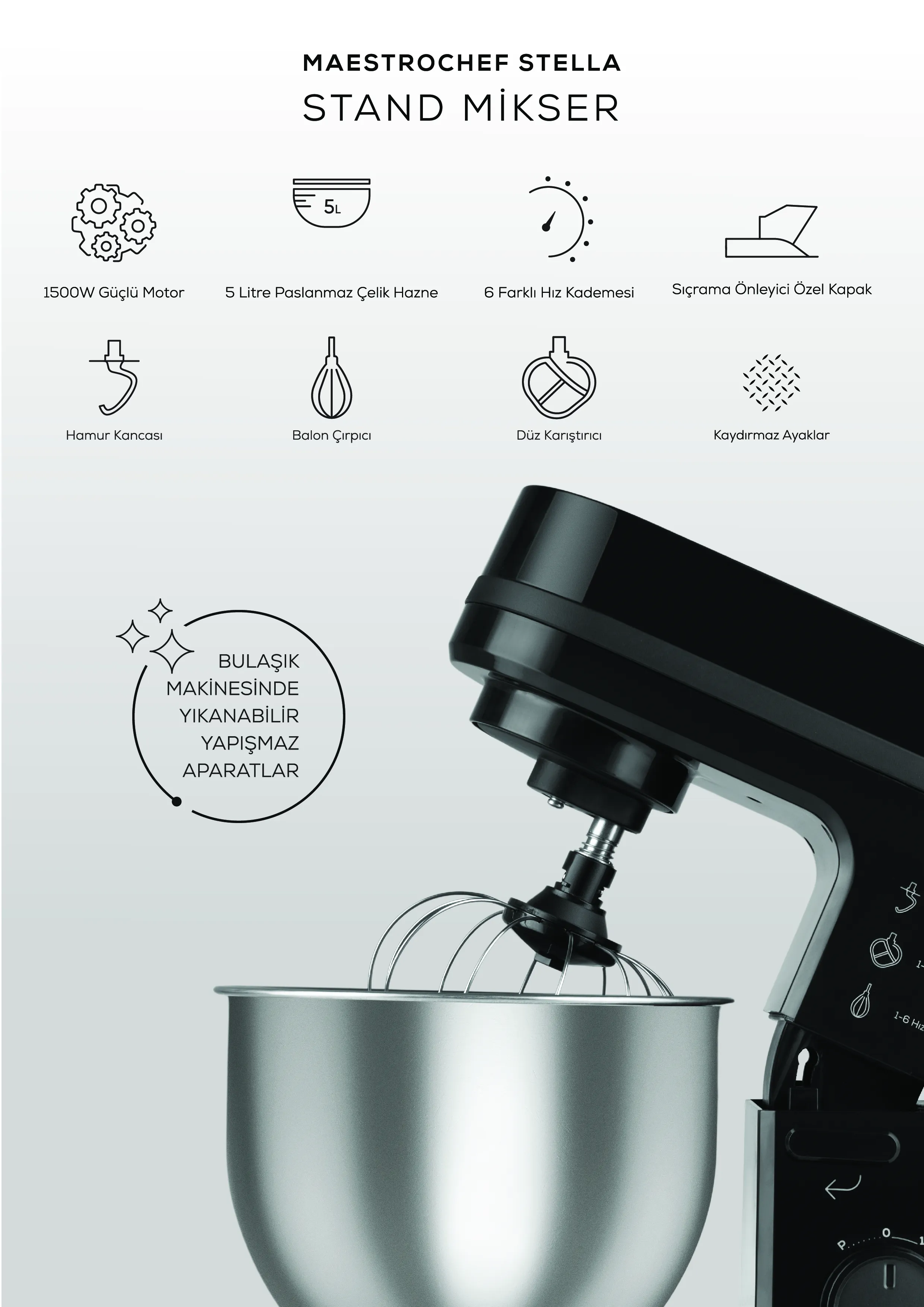 همزن کاسه دار کاراجا Maestrochef Stella مشکی ۱۵۰۰ وات ۵ لیتری
