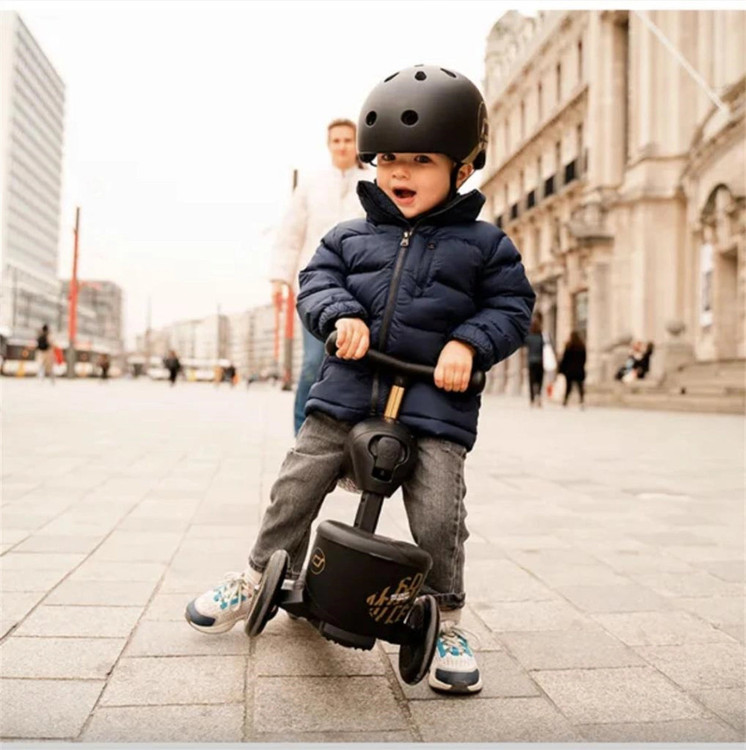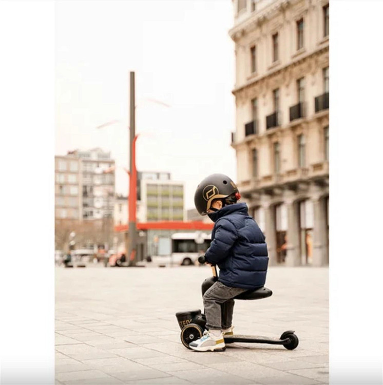 این اسکوتر با برخورداری از دو چرخ در جلو و یک چرخ در عقب، تعادل عالی ایجاد کرده و به کودک اجازه میدهد در حالت نشسته بهصورت ایمن و راحت حرکت کند.