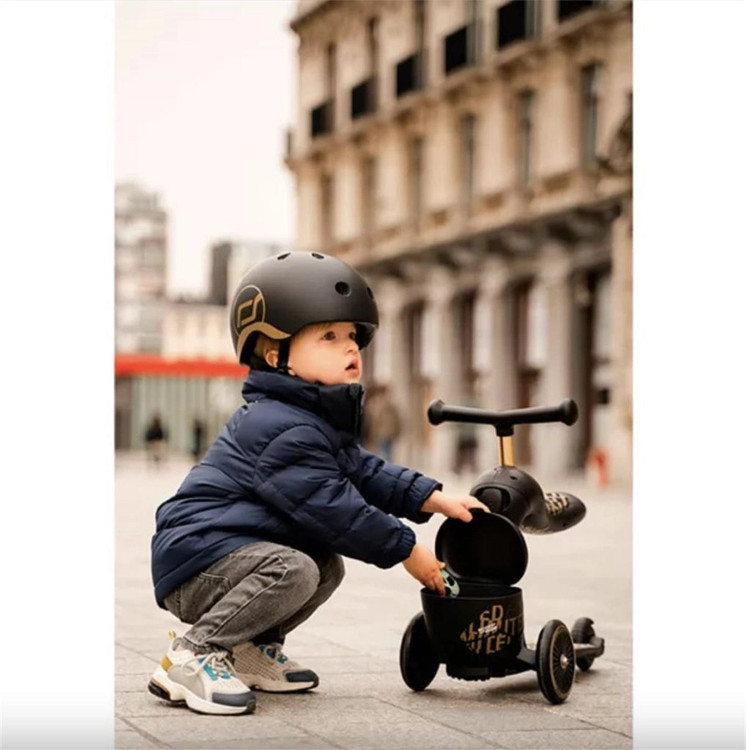 **Scoot and Ride Highwaykick 1 Lifestyle – Wildcat** دارای طراحی نوآورانه دوکاره است که بهراحتی و بدون نیاز به هیچ ابزاری قابل تنظیم و تبدیل از حالت نشسته به حالت ایستاده میباشد و به همین دلیل یکی از برندهای پیشرو در دنیای اسکوترها محسوب میشود.
