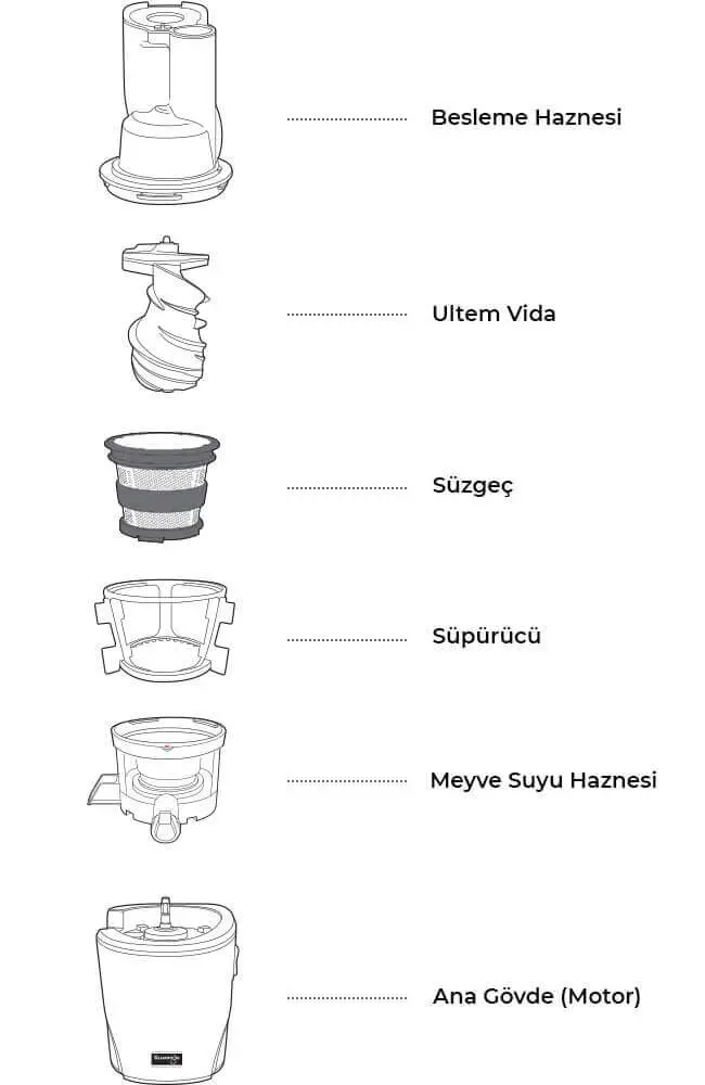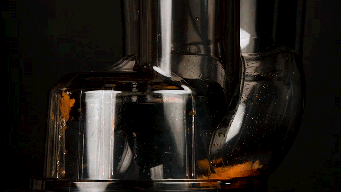 پیچ فشردهسازی نسل جدید از جنس Ultem اکنون در قسمت بالایی خود مکانیزم راهنمای خردکننده دارد. وقتی مواد سخت یا دارای الیاف ضخیم مانند هویج، ساقه کرفس یا خیار در دهانه تغذیه قرار داده میشود، پیچ Ultem آنها را قبل از فشردهسازی بهطور خودکار خرد میکند.