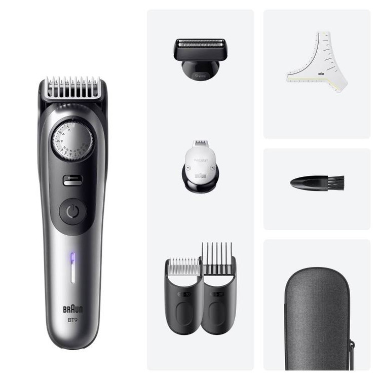 دقت حرفهای و کنترل ۱۰۰٪: بهترین دستگاه اصلاح ریش براون، سری ۹، همراه با تجهیزات درجه یک آرایشگری برای ایجاد خطوط بینقص، انتقالها (فِید) و پرداختهای نهایی.