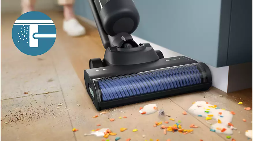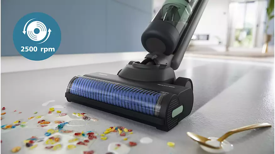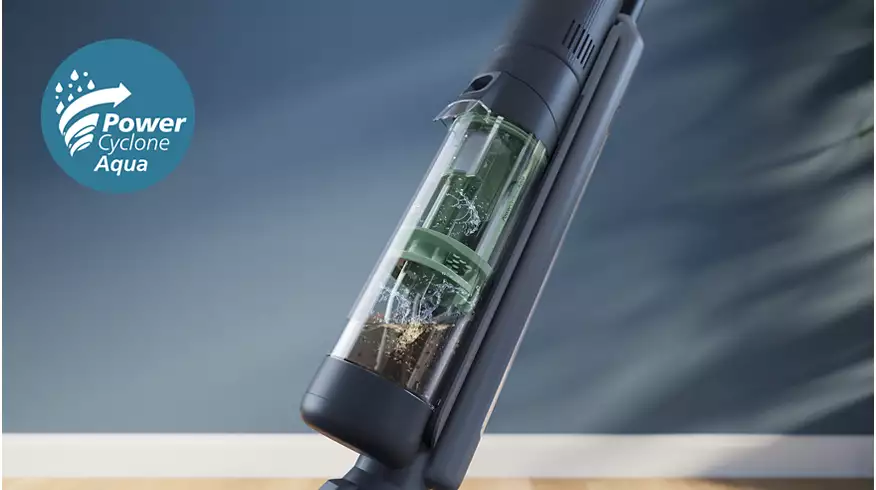 سری AquaSpin با برسهایی که در جهت مخالف یکدیگر و با سرعت بالا میچرخند، مانع از تجمع آلودگی روی برس شده و تمام ذرات را در یک حرکت به داخل دستگاه میکشد.