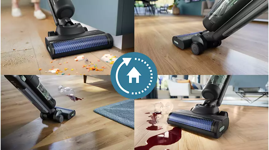 در سطوح نرم، با سری مخصوص جاروکشی خشک و نور LED میتوانید آلودگیهای پنهان را آشکار کرده و با قدرت مکش بالا، تمیزی عمیقتری به دست آورید.