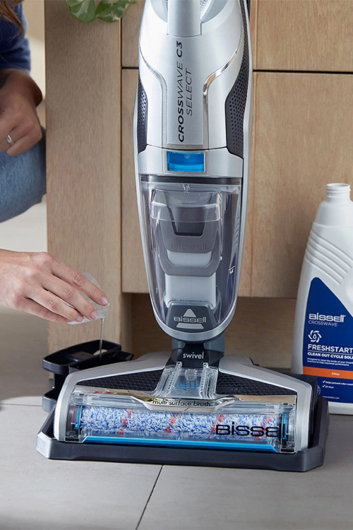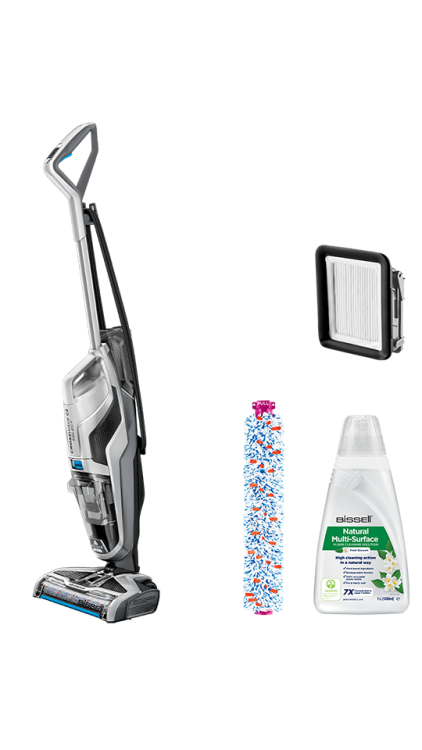 CrossWave همراه با شوینده طبیعی مخصوص Bissell برای تمام سطوح (۱ لیتر) ارائه میشود. برای بهترین عملکرد دستگاه، توصیه میشود از شوینده Bissell همراه با CrossWave استفاده کنید. سیستم FreshStart با برس و فیلتر ضدباکتری، از ایجاد بوی نامطبوع پس از استفاده جلوگیری میکند.