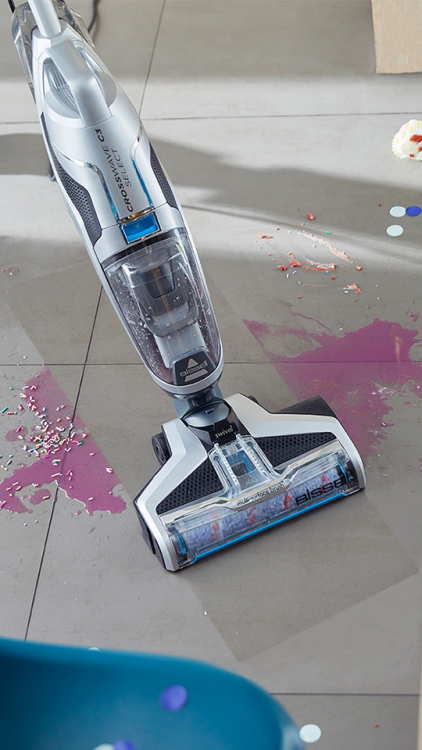 Bissell CrossWave C3 Select همزمان کفهای سخت مانند پارکت، سرامیک و لمینت و همچنین فرش و قالیچهها را جارو، طی و خشک میکند. در مقایسه با روشهای سنتی تمیزکاری با جاروبرقی، طی و سطل، با صرف تلاش و زمان بسیار کمتر، نتایج تمیزکاری مؤثرتری به دست میآورید. کنترل پنل لمسی دستگاه امکان تغییر آسان بین سطوح مختلف و استفاده از مقدار آب متناسب با نیاز را فراهم میکند. با Bissell CrossWave C3 Select همیشه کنترل در دست شماست.