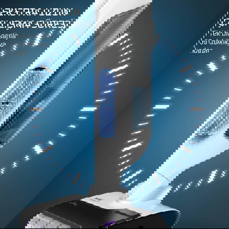 با حداکثر ۶۰ دقیقه زمان کار، امکان تمیز کردن تمام نقاط خانه بدون نیاز به توقف را فراهم میکند.