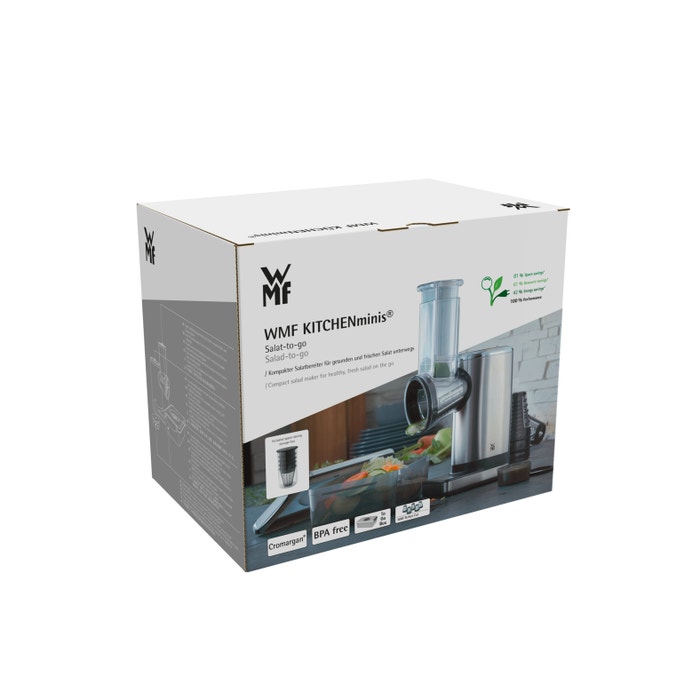 هر جا که باشید از سالادهای تازه و سالم لذت ببرید! دستگاه خردکن سالاد WMF KITCHENminis Salad-to-go با طراحی جمعوجور، زیبایی خیرهکننده و عملکرد قدرتمند خود، تجربهای متفاوت از آمادهسازی سالاد ارائه میدهد. این محصول از استیل ضدزنگ اختصاصی و پتنتشده WMF به نام Cromargan® ساخته شده که دوام بالا و ظاهری مات و براق دارد و در برابر زمان مقاومت میکند.