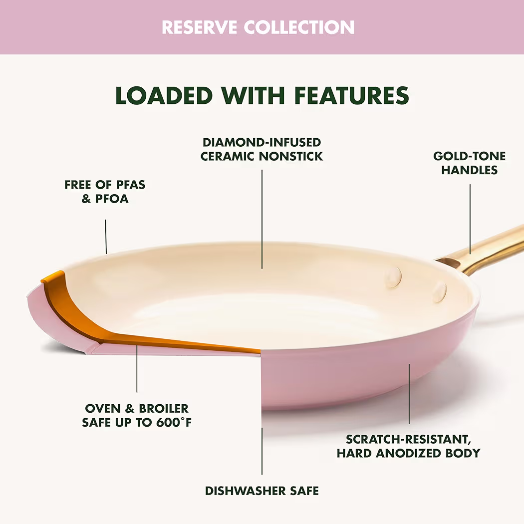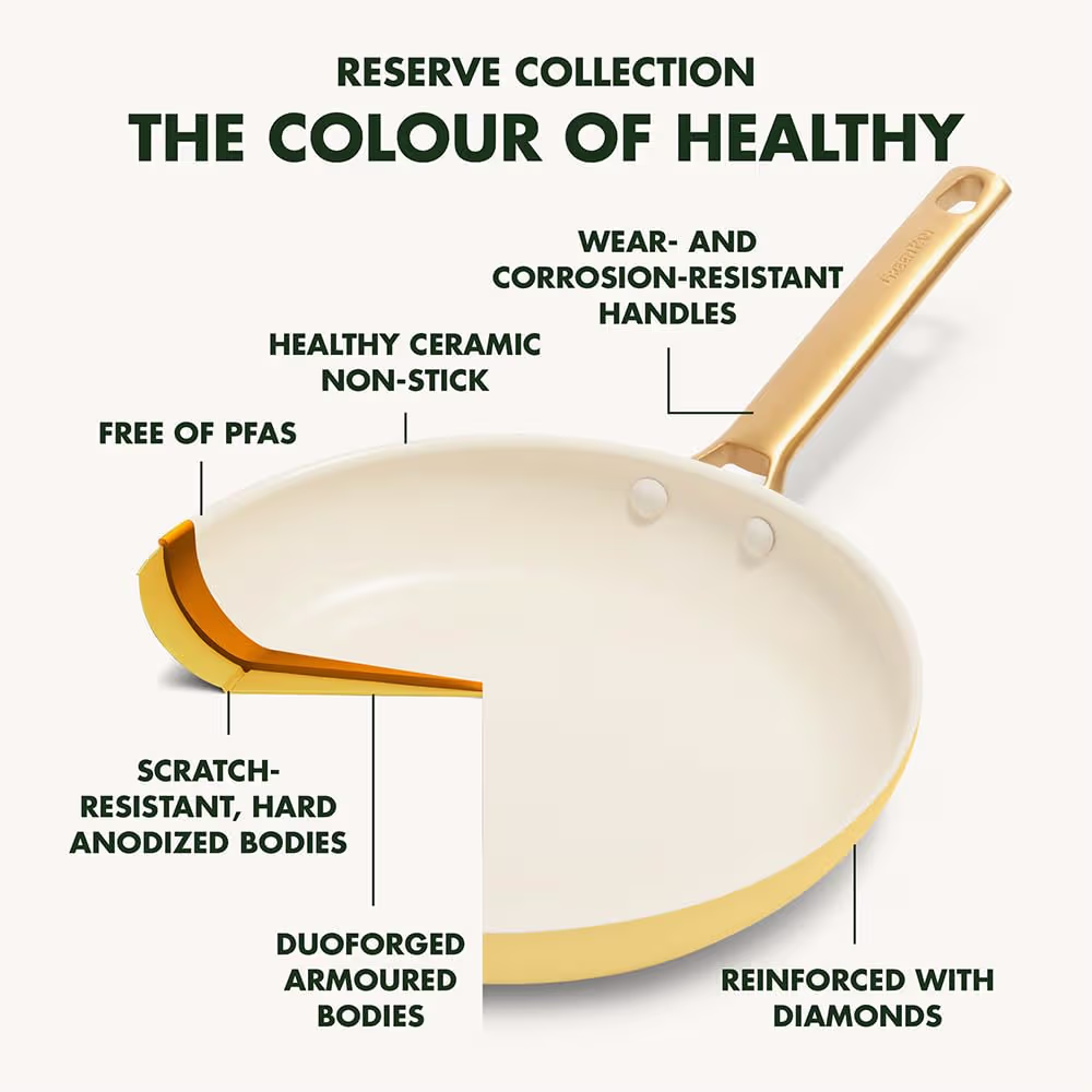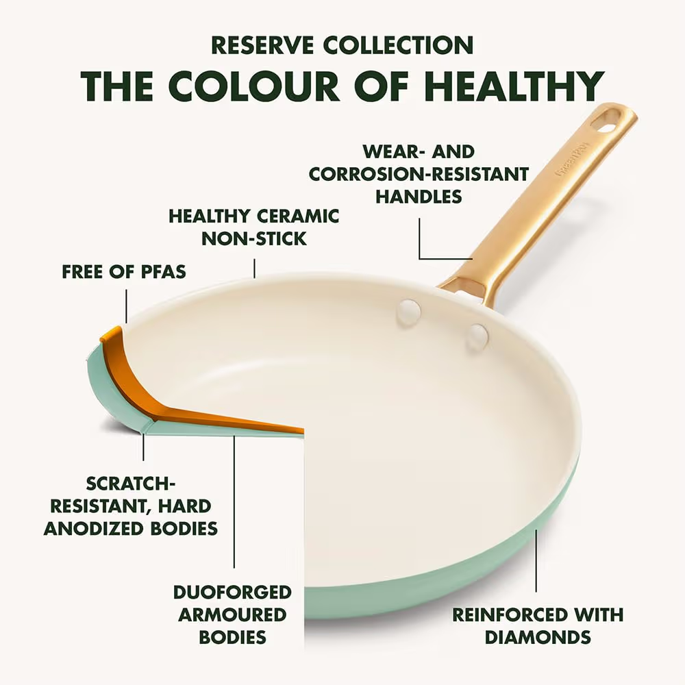 مجموعه Padova Reserve برای سرآشپزهایی طراحی شده که در آشپزی به دنبال نتایج عالی هستند. این سرویس برای استفاده روی تمام منابع حرارتی، از جمله القایی، مناسب است و تا دمای ۲۰۰ درجه سانتیگراد در فر قابل استفاده است. دارای کف ضخیم چدنی و دستههای مقاوم استیل ضدزنگ میباشد. سطح Thermolon ارگانیک و بدون مواد شیمیایی مضر، امکان پخت سالم را فراهم میکند. مجموعه Padova با استفاده از مواد باکیفیت برای دوام طولانی طراحی شده است.