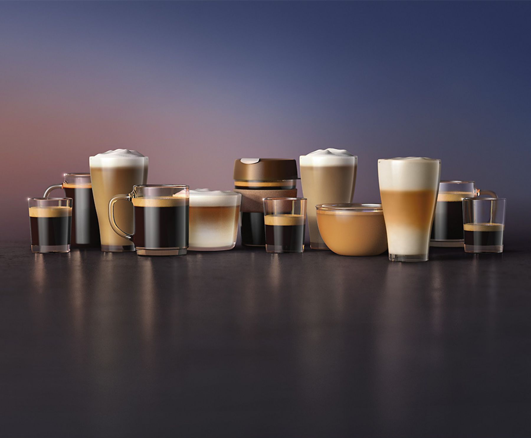 تنها با یک لمس میتوانید نوشیدنیهای رسترتو، اسپرسو، اسپرسو لانگو، قهوه سیاه، کافه کرما، آمریکانو، کاپوچینو، لاته ماکیاتو، کافه او له، لاته، فلت وایت و حتی قابلیت تهیه نوشیدنی در لیوان قابل حمل (Mug-to-Go) را آماده کنید. برای علاقهمندان به چای نیز قابلیت تهیه آب داغ وجود دارد.