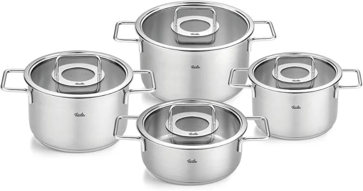 سرویس قابلمه استیل ۸ پارچه برند Fissler آلمان مدل Pure Collection درب شیشهای