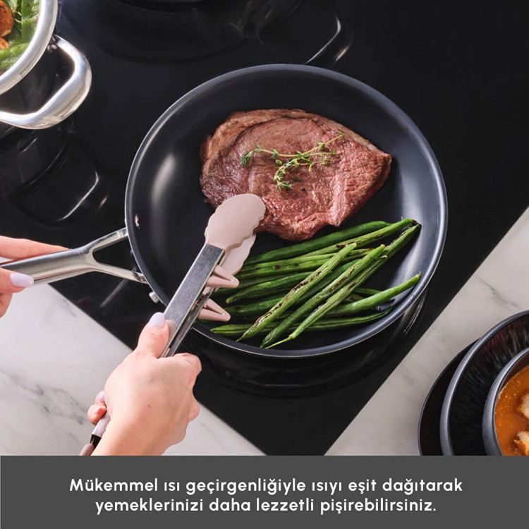سطح بسیار مقاوم و ضد خش این مجموعه به شما اجازه میدهد هنگام آشپزی با خیال راحت از ابزارهای فلزی استفاده کنید.
