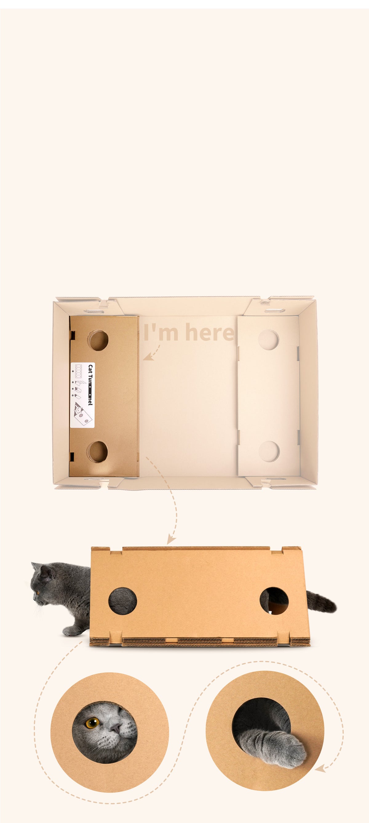 بستهبندی PUROBOT ULTRA فقط برای حملونقل نیست. با دنبال کردن دستورالعمل ساده روی برچسب یا تا زدن کارتن به روش دلخواه، میتوانید آن را به یک تونل گربه تبدیل کنید؛ روشی سرگرمکننده و دوستدار محیط زیست برای بازی و کاوش گربهها.