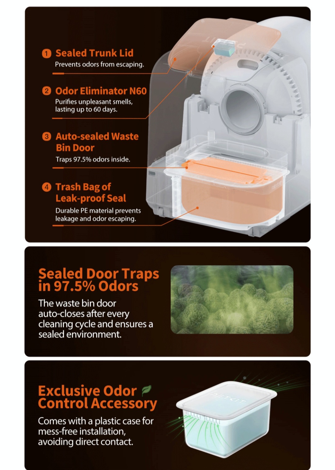 با سیستم بدون تماس PETKIT، زبالهها بهطور خودکار بستهبندی و کیسهها پلمب میشوند تا از تماس مستقیم با فضولات و انتشار باکتری جلوگیری شود.