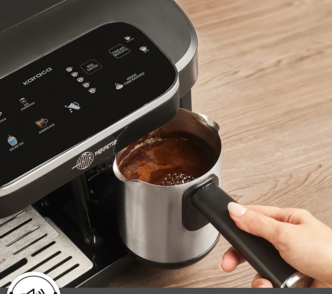 Karaca Hatır Perfetto تجربه قهوهنوشی را از نو تعریف میکند. این دستگاه، اولین فناوری در دنیا است که میتواند قهوه ترک و اسپرسو را در یک دستگاه و حتی بهصورت همزمان آماده کند تا بدون انتظار، از نوشیدن قهوه لذت ببرید.