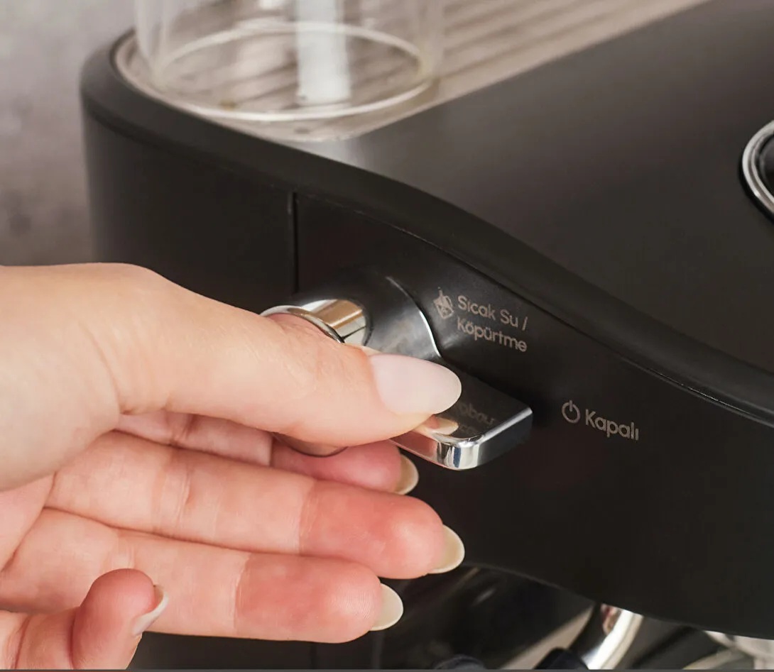 با خروجی بخار، آب داغ برای رقیق کردن اسپرسو و تهیه نوشیدنیهای دیگر فراهم میشود.