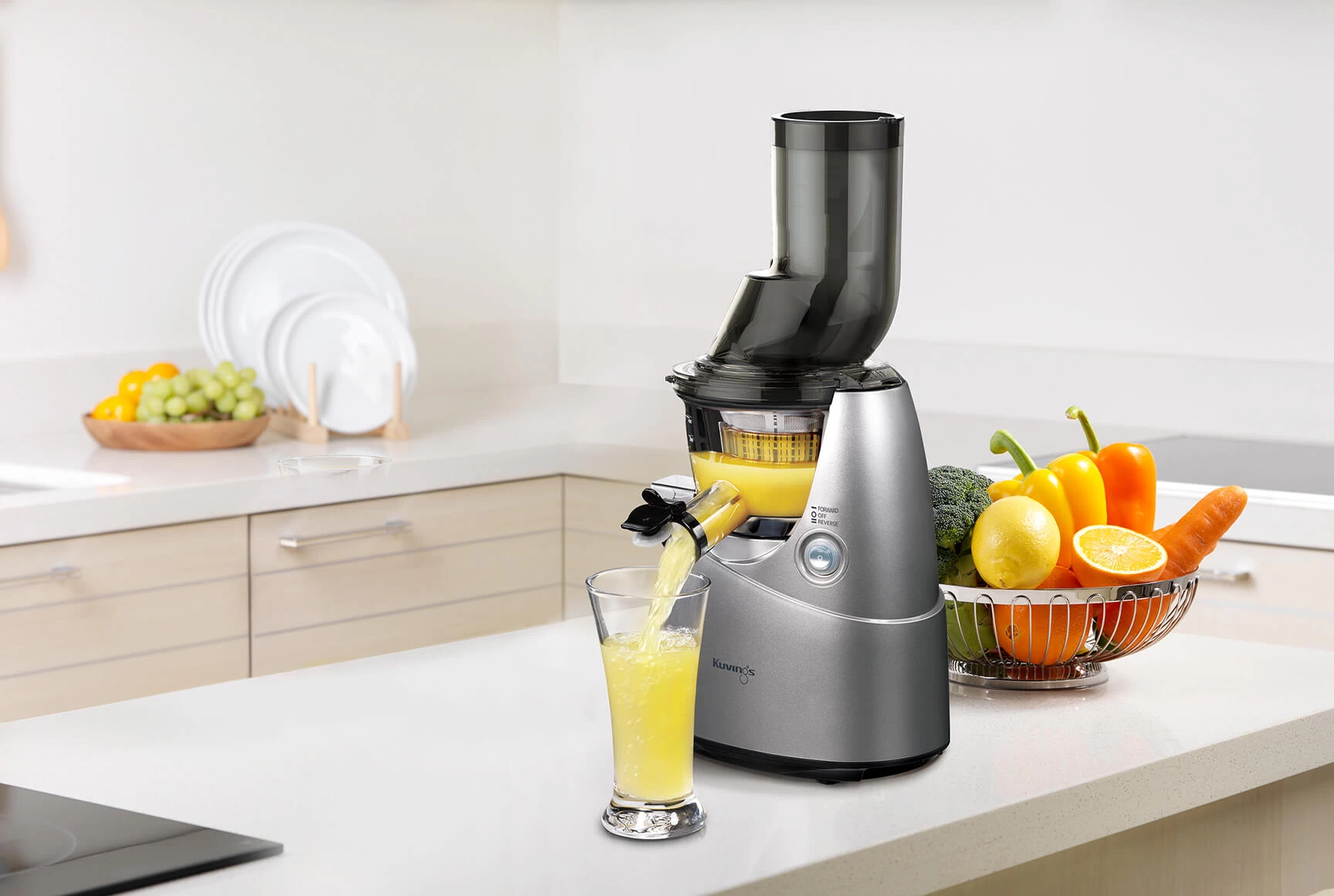 بدون نیاز به خرد کردن یا تکهتکه کردن، میوهها و سبزیجات را بهصورت کامل آبگیری کنید و از این راحتی لذت ببرید.