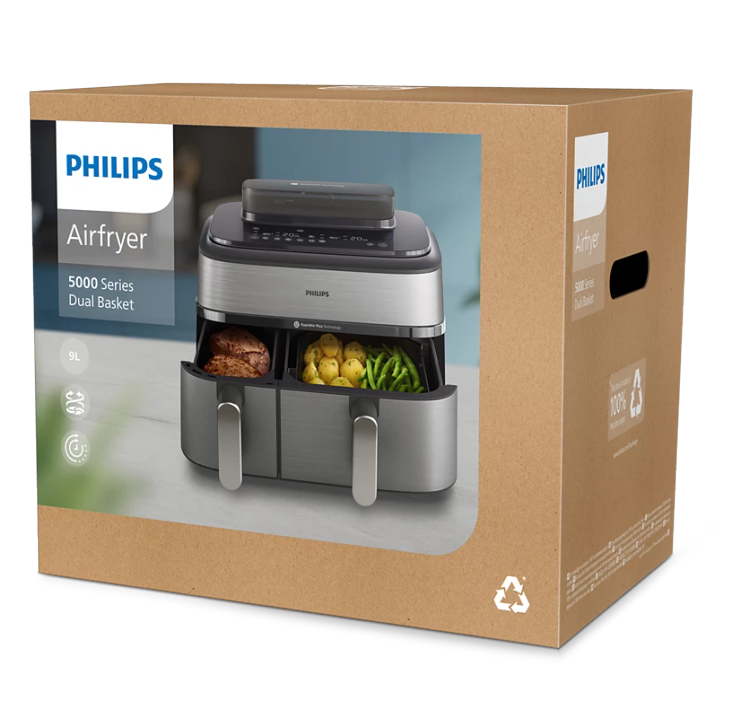 با ایرفرایر دو محفظهای فیلیپس، غذاهای شما همیشه بهصورت سریع و آسان آماده میشوند.