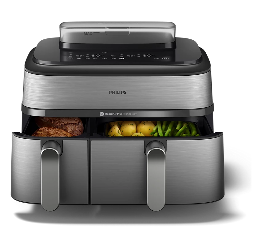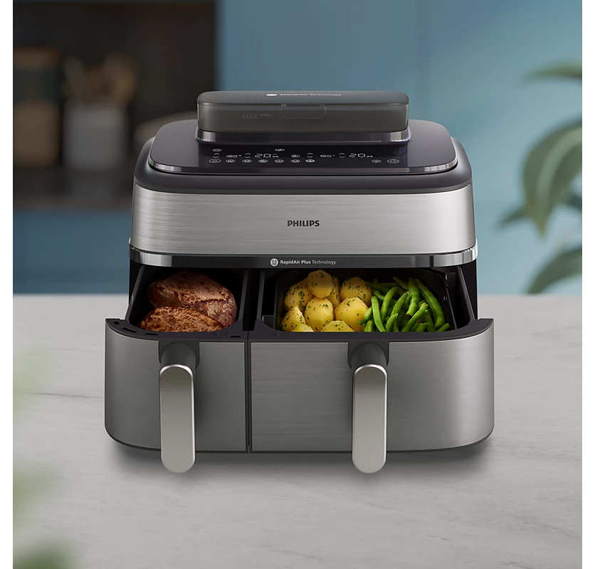 با ایرفرایر دو محفظهای فیلیپس، غذاهای شما همیشه بهصورت سریع و آسان آماده میشوند.