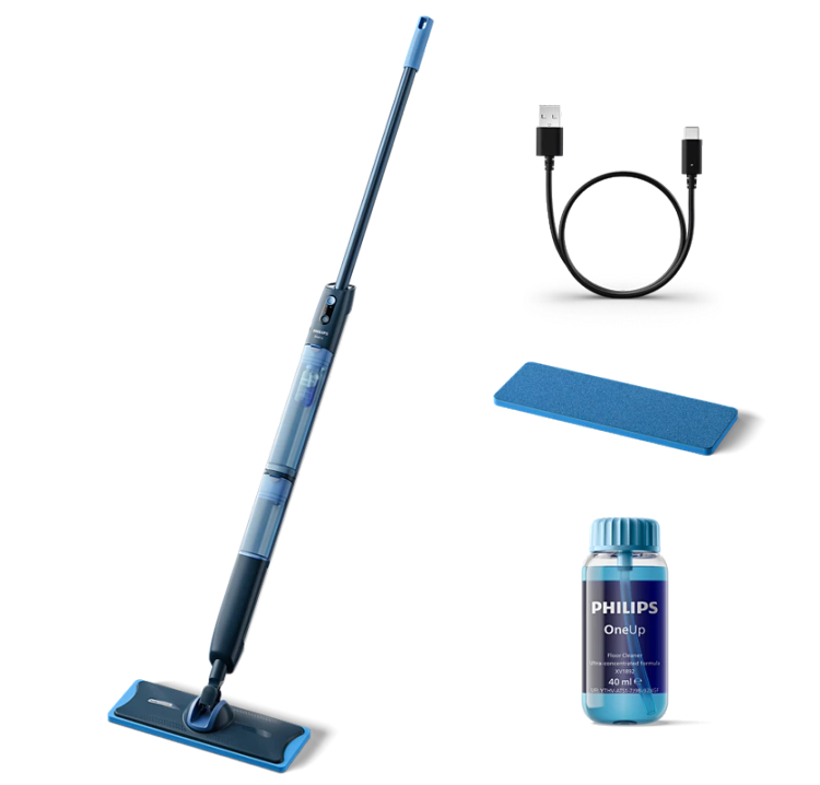 بدون نیاز به سطل، فشردن تی یا آبکشی، از تمیزکاری آسان کف لذت ببرید. تی برقی فیلیپس OneUp تمام مراحل نظافت را ساده میکند.