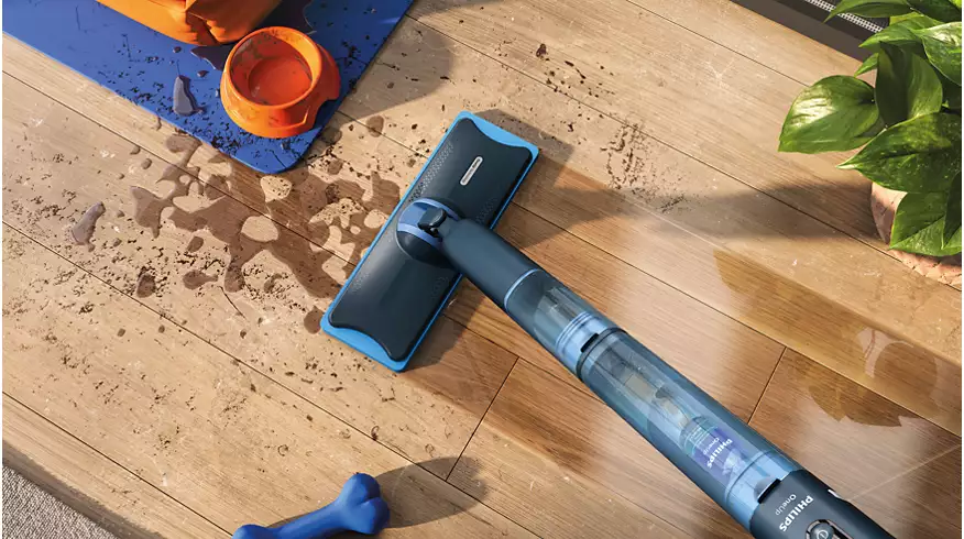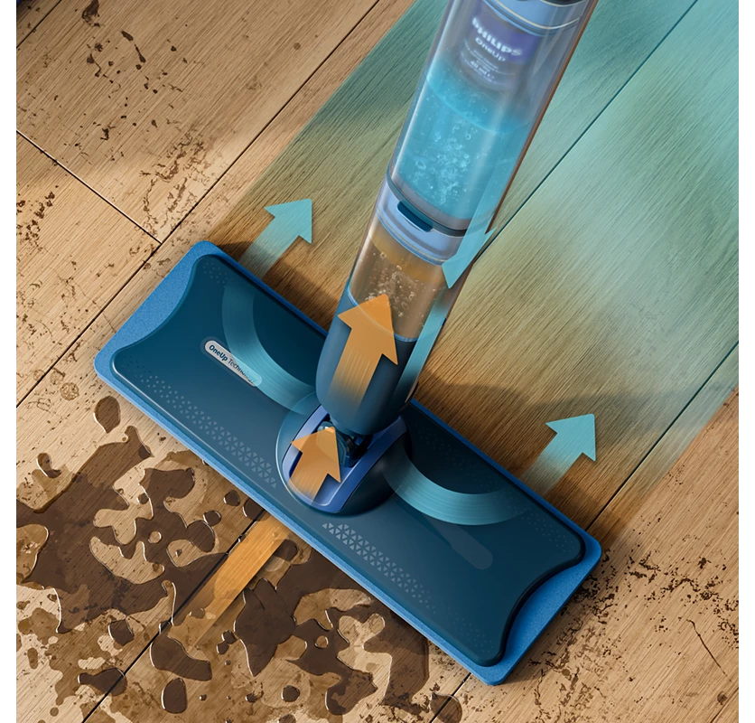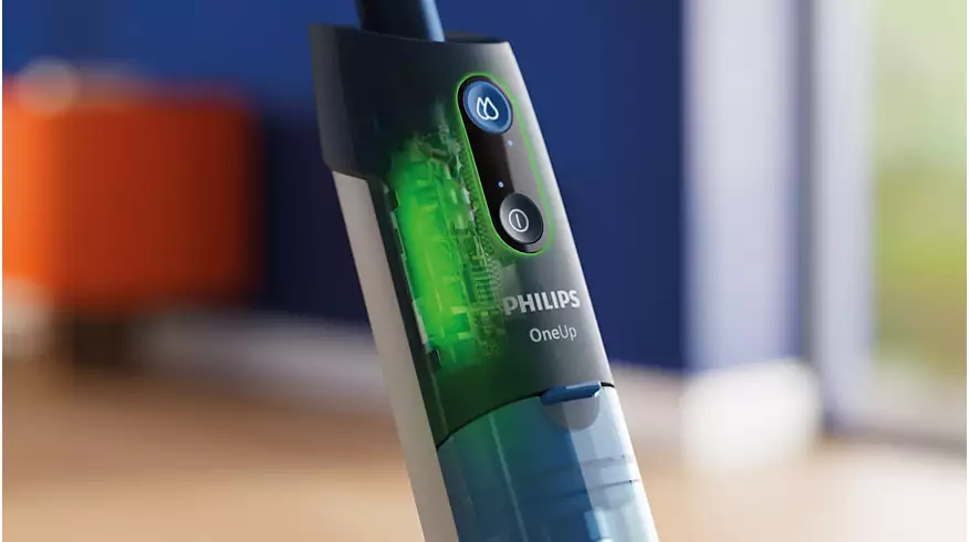 بدون نیاز به سطل، فشردن تی یا آبکشی، از تمیزکاری آسان کف لذت ببرید. تی برقی فیلیپس OneUp تمام مراحل نظافت را ساده میکند.