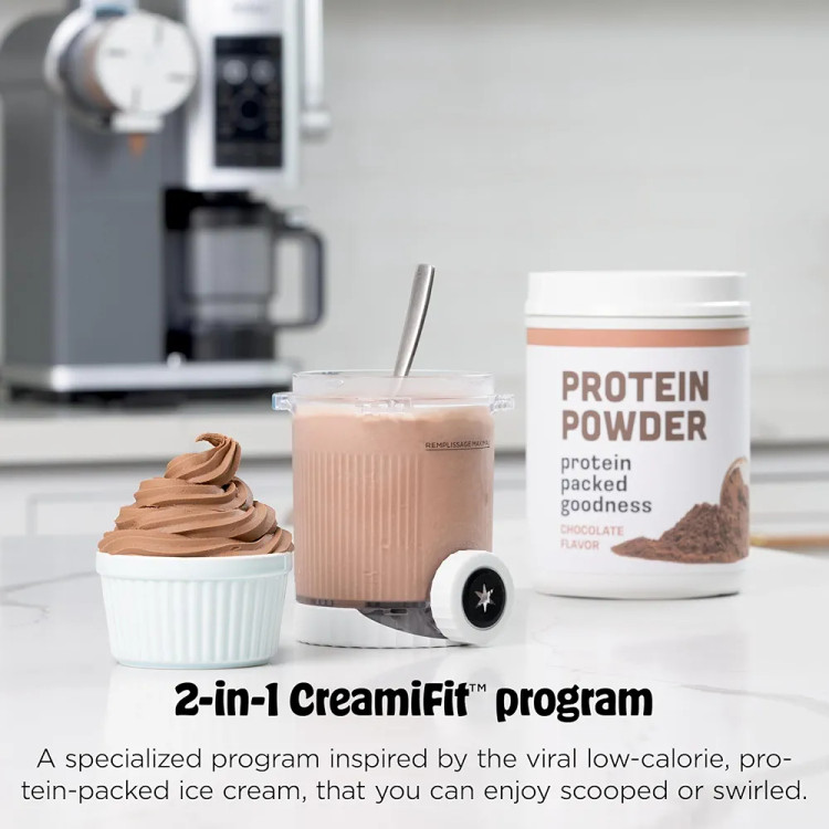 CreamiFit برای استفاده از شیکها یا ترکیبات پروتئینی طراحی شده و میتوانید آن را به صورت سافتسرو یا اسکوپی آماده کنید، مثل سافتسرو پروتئینی ماچا.