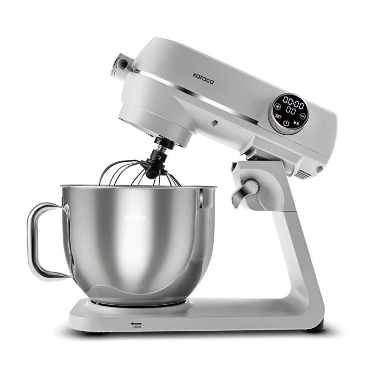همزن کاسهدار حرفهای کاراجا Multichef Artisan با بدنه چدنی و نمایشگر دیجیتال، سفید مرواریدی، ۱۸۰۰ وات، ۷ لیتر