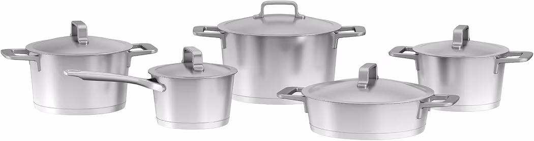 ست قابلمه ۱۰ پارچه استیل ضدزنگ که شامل دو عدد گِوِچ، یک قابلمه و یک تابه سوتِه دربدار میباشد. این ست تا دمای ۲۵۰ درجه سانتیگراد قابل استفاده در فر است و دارای کف کپسولی با اتصال ضربهای میباشد که انتقال حرارت سریع و یکنواخت را فراهم میکند. در قسمت داخلی ظروف، نشانگرهای اندازهگیری حجم تعبیه شده است. دستگیرههای خنکمان از جنس استیل ضدزنگ هستند. این مجموعه قابل شستوشو در ماشین ظرفشویی بوده و برای استفاده روی تمامی انواع اجاقها از جمله القایی مناسب است.